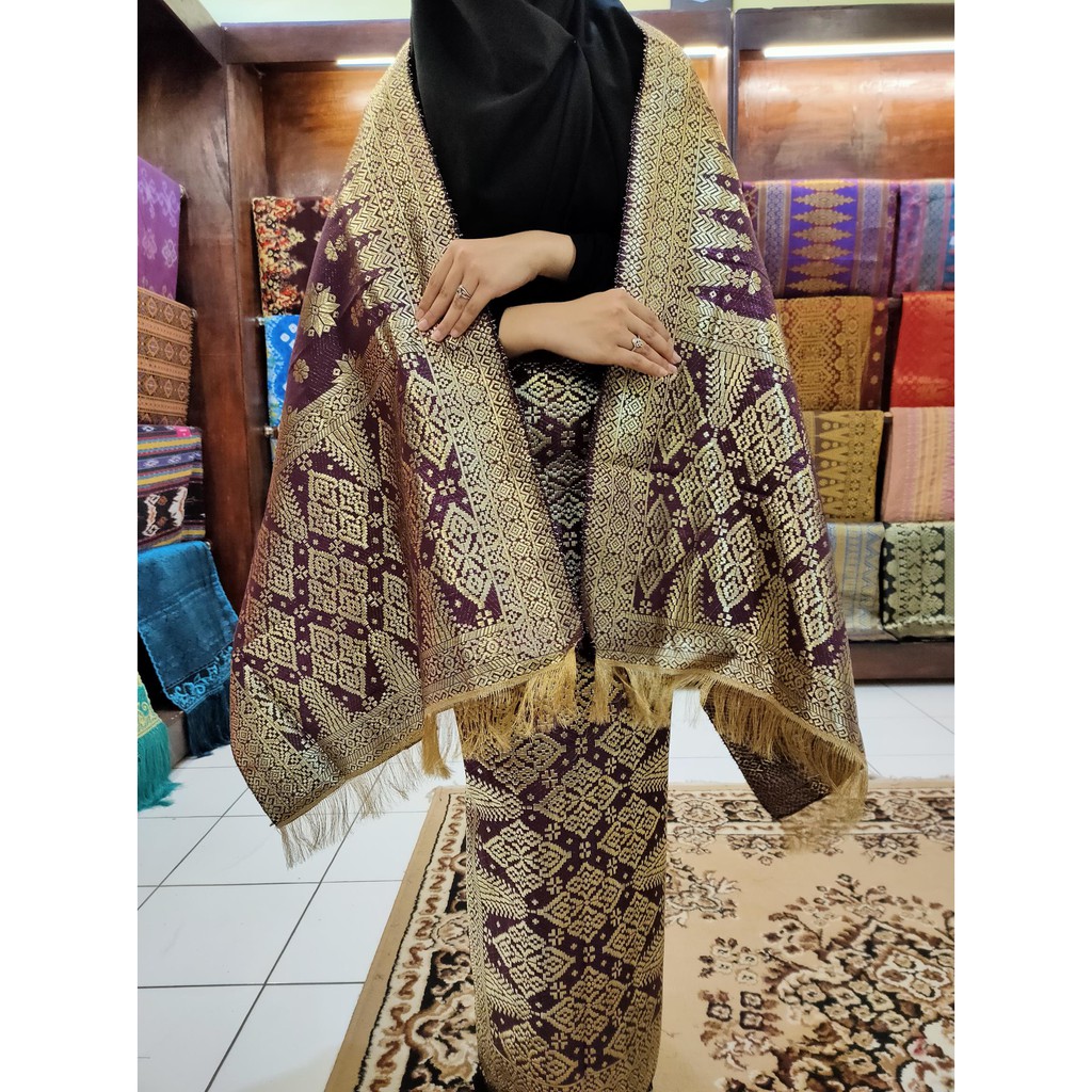 Panjang 1 m lebar 1,1 m 2. The design is made up of gold or silver threads to create pattern in part or . Beli produk pakaian hanya di blibli. Songket palembang atbm meteran warna hitam kombinasi emas, rp55.000 ;